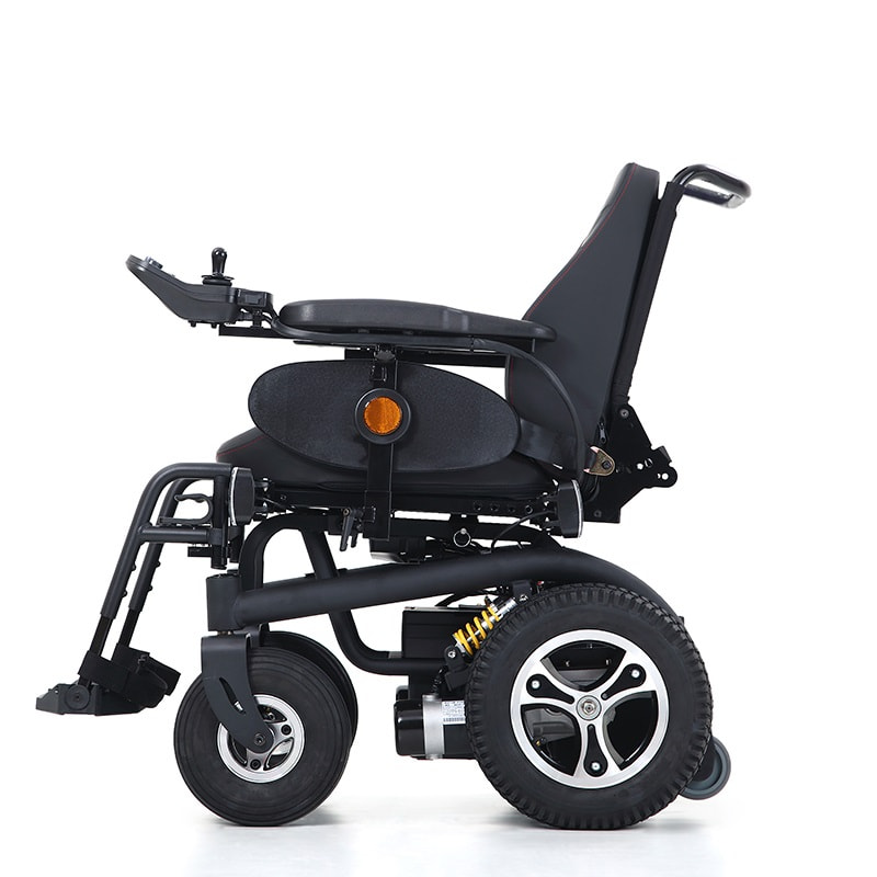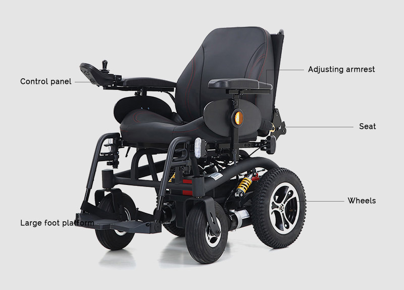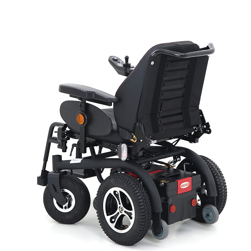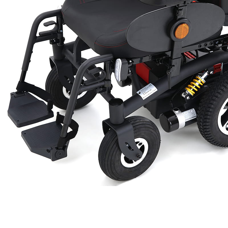 · Wydajność na świeżym powietrzu · Regulowana szerokość siedzenia · Regulowana wysokość podłokietników · Wysoka wydajność i wysokowydajny pakiet silnikowy (ogółem 700 watów) · Ulepszona pojemność masy 136 kg (300 funtów) · 10 cali duże przednie koło, 14 cali pneumatyczne opony · Joystick dostępny po obu stronach · Opcjonalne mocowanie kontrolera huśtawki · Opcjonalny pakiet lekki · Opcjonalnie w Powertilt System podnoszenia (wkrótce)